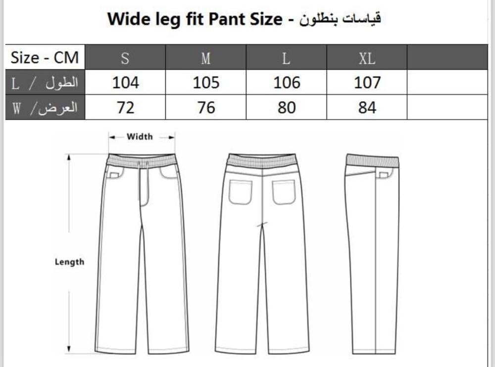 البنطلون بنفس الخامة واللون، بقصّة مريحة وواسعة تناسب الإطلالات اليومية والكاجوال