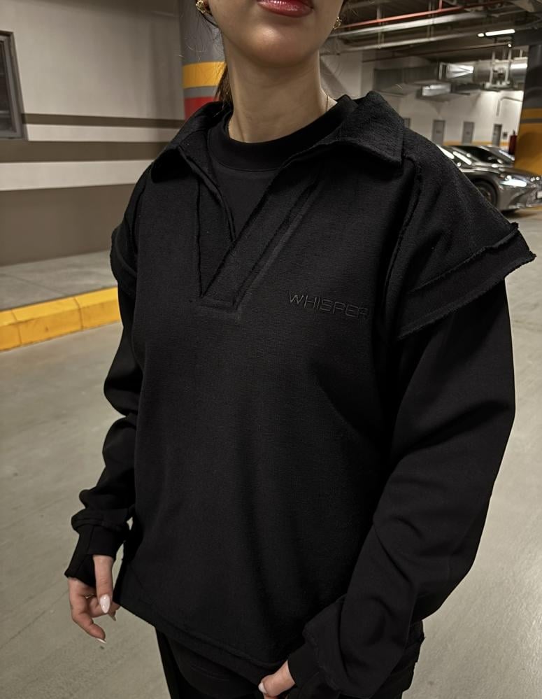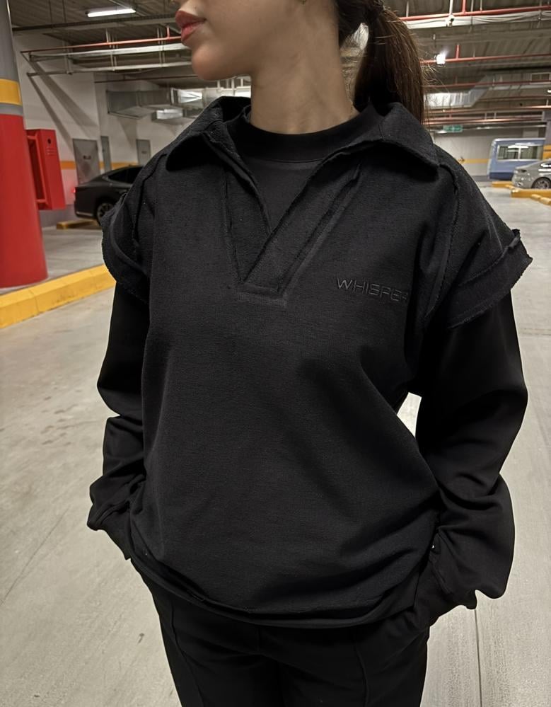سويتر WHISPER المميز بتصميم من قطعتين منفصلتين — سويتر أساسي بلمسة فخمة، وفوقه سديري مستقل بقماش مختلف لإطلالة فريدة.